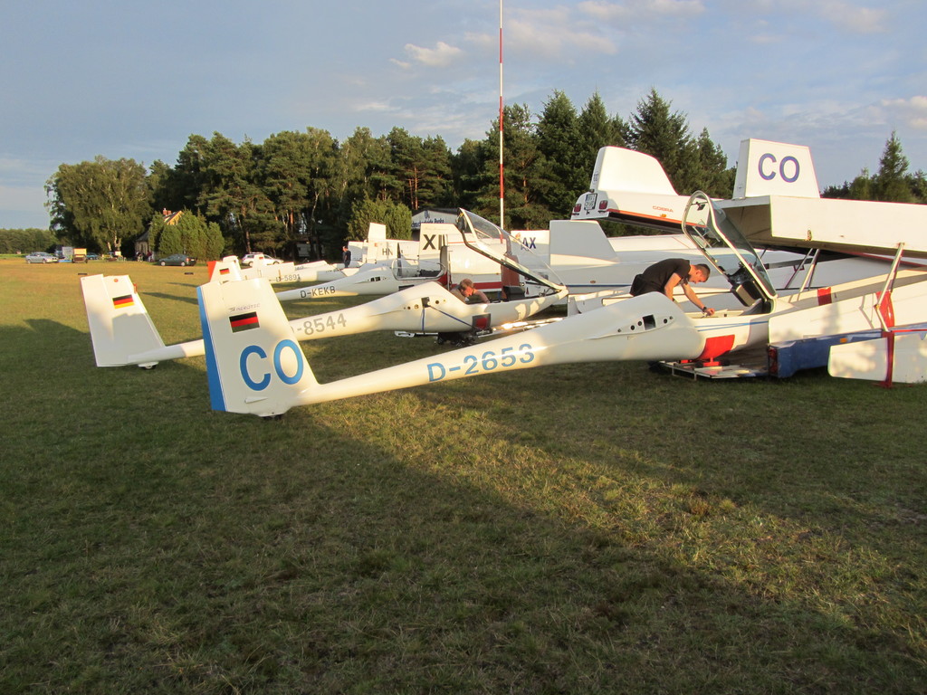 Die erste Woche in Repke sind wir vom Wetter nicht gerade verwöhnt worden.Ein Alternativprogramm der Autostadt in Wolfsburg sowie des Serengetiparks in Hodenhagen standen auf dem Programm.Am Mittwoch konnten wir endlich das erste Mal auf Strecke gehen. An großen Schauern vorbei konnten schon die ersten 250 Streckenkilometer geflogen werden. Eine Außenlandung auf dem Flugplatz Stüde im kräftigen Schauer war dabei unvermeidlich. Am Donnerstag wurden vom Wetter-jetzt keine fliegbaren Strecken angegeben. Dennoch konnten an diesem Tag bis zu 350 km geflogen werden. Große Ausbreitungsschichten gestalteten die Streckenführung schwierig und waren auch für die Rückkehr nach Repke ausgesprochen problematisch. So gab es mehrere Landungen auf fremden Flugplätzen sowie eine Außenlandung 10 km vor Repke. Der Freitag wurde noch schwieriger mit noch größeren Ausbreitungen. Flüge bis maximal 90 km waren bei den ungünstigen Bedingungen nur möglich und wieder musste eine Außenlandung auf dem Flugplatz Wilsche gemacht werden.
