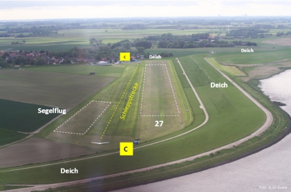 Alle Segelflugzeuge hingegen sollten, wie auch in der Sichtanflugkarte (für Navigationszwecke nicht geeignet) eingezeichnet, die südliche Platzrunde zum Anfliegen nutzen.