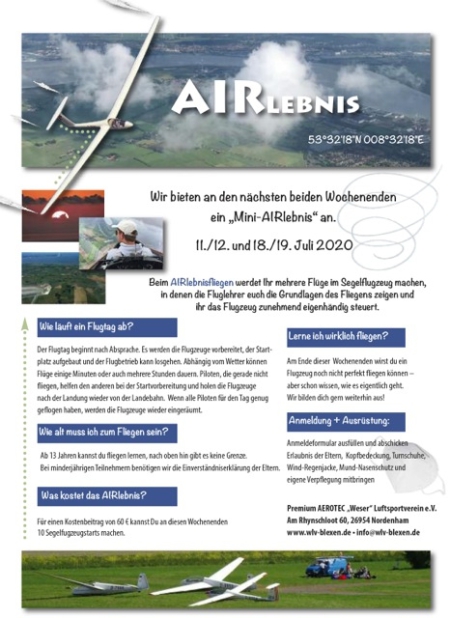 Für die Anmeldung zum Mini-AIRlebnis 2020 bitte das Kontaktformular verwenden.